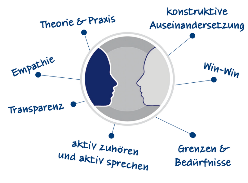 Kommunikationstraining für "Fortgeschrittene" für mindestens 4 bis maximal 8 Teilnehmer, 2-4-stündige Trainingsblöcke Praktische Anwendungen der bereits in einem eintägigen Training erworbenen Fertigkeiten; Mediation & Coaching eines Konfliktgespräches Mithilfe der Zuhörer- und Sprecherkompetenzen unterstütze ich Sie dabei, die Konfliktursache zu erkennen und ein Gespräch auf Win-Win-Ebene zu führen. Fragen Sie nach aktuellen Seminarterminen oder vereinbaren Sie einen individuellen Termin! Ich freue mich auf Sie.